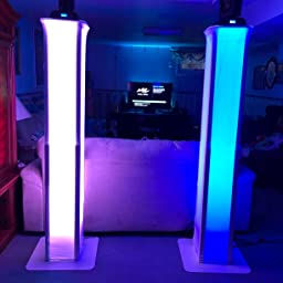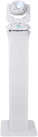 Variable height, black powdercoated steel podium stand, complete with white scrim.